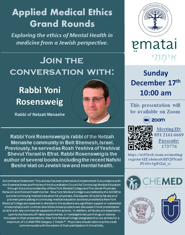 An enlightening talk on end-of-life care by Rav Asher Weiss, the global authority on medical Halacha. In partnership with the Beis Medrash for Medical Halacha, New York Medical College, and Touro University, this talk offered CME credit for those who attended and shed some much needed light on how to approach end-of-life care as a Jewish physician.